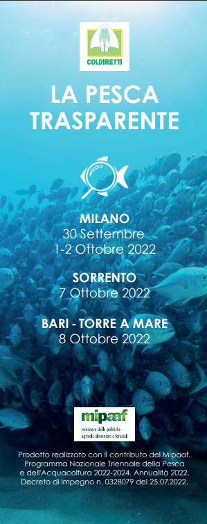 Il presente progetto è realizzato da Coldiretti nell’ambito del Piano Nazionale Triennale della Pesca e dell’Acquacoltura 2022-2024-Annualità 2022, ai sensi del Decreto Direttoriale n. 0219998 del 16 maggio 2022 e con Decreto di impegno n. 0328079 del 25.07.2022.