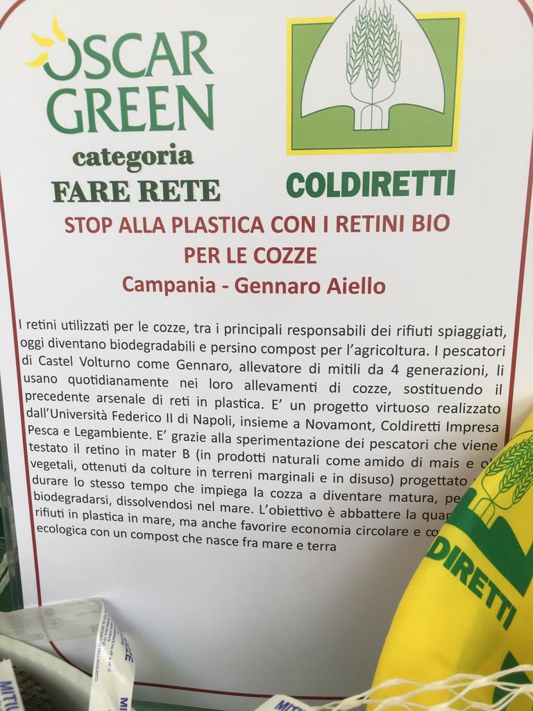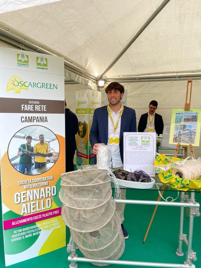 Proiettati verso un’attività sempre più sostenibile, vince nel 2022 gli oscar green con i retini Bio per l’allevamento delle cozze. Un progetto ambizioso che punta ad eliminare del tutto le reti in plastica e utilizzando reti Bio progettate per durare il tempo necessario che la cozza impiega a diventare matura, per poi biodegradarsi e dissolversi in mare.